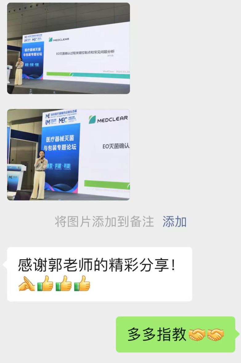 3月28日上午,醫(yī)捷醫(yī)療技術(shù)總監(jiān)郭翠紅女士受邀出席“醫(yī)療器械滅菌與包裝專題論壇”,并發(fā)表了《滅菌確認(rèn)過程的關(guān)鍵控制點(diǎn)和常見問題分析》專題演講。郭總系統(tǒng)梳理了環(huán)氧乙烷(EO)滅菌確認(rèn)過程中的關(guān)鍵控制點(diǎn),并深入剖析了常見問題的成因及相應(yīng)的解決方案,結(jié)合實(shí)際案例,幫助醫(yī)療器械生產(chǎn)企業(yè)更精準(zhǔn)地掌握EO滅菌過程確認(rèn)的關(guān)鍵環(huán)節(jié)。