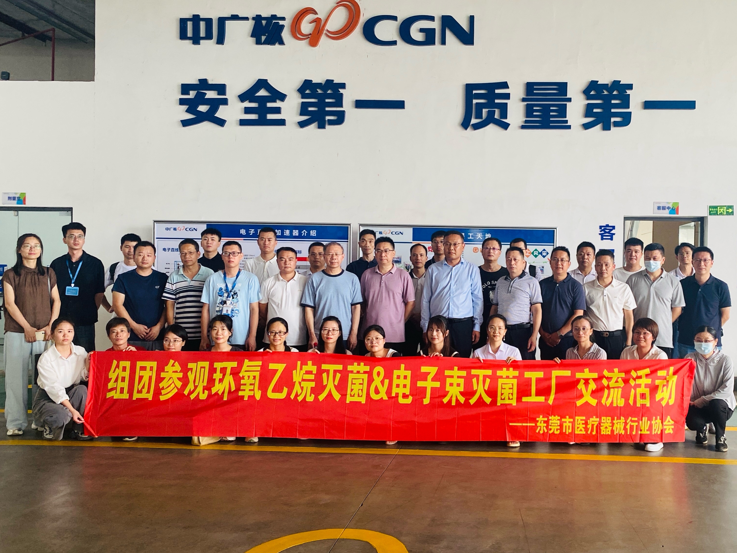 為加強(qiáng)企業(yè)對醫(yī)療器械環(huán)氧乙烷(EO)滅菌及電子束輻照滅菌過程的深度認(rèn)識,進(jìn)一步促進(jìn)行業(yè)企業(yè)間的交流合作。7月11日,東莞市醫(yī)療器械行業(yè)協(xié)會聯(lián)合中廣核戈瑞(深圳)科技有限公司東莞分公司,以及廣州醫(yī)捷醫(yī)療器械技術(shù)服務(wù)有限公司,組織了滅菌工廠參觀暨滅菌主題研討會活動。本次活動共吸引了來自20家企業(yè)的三十多位代表一同參觀交流。